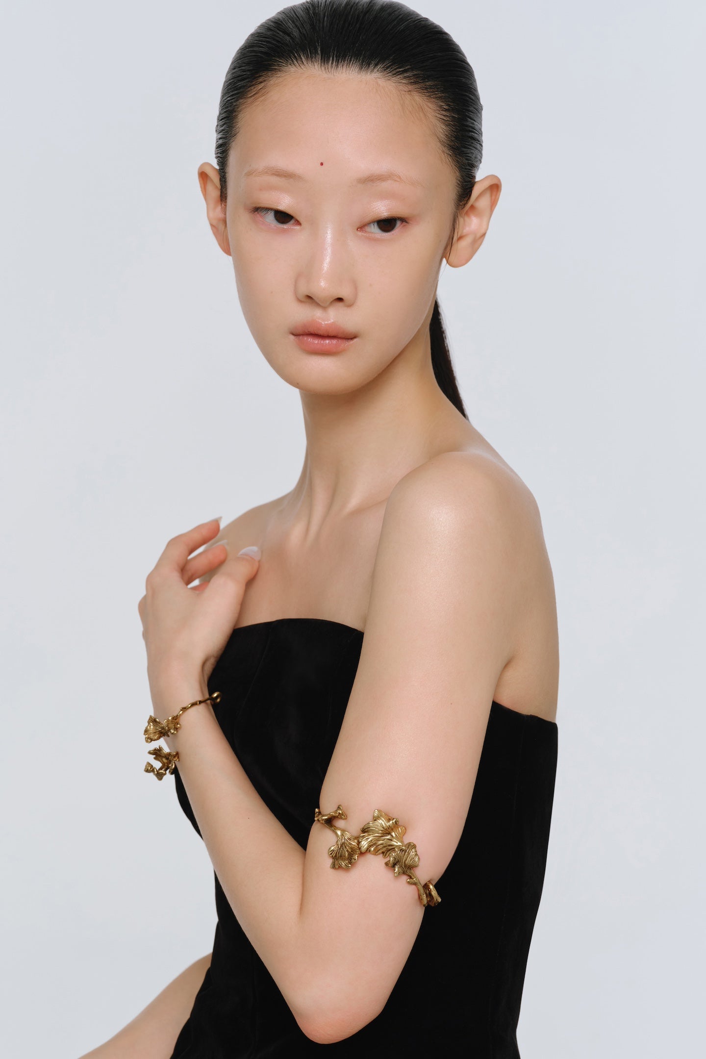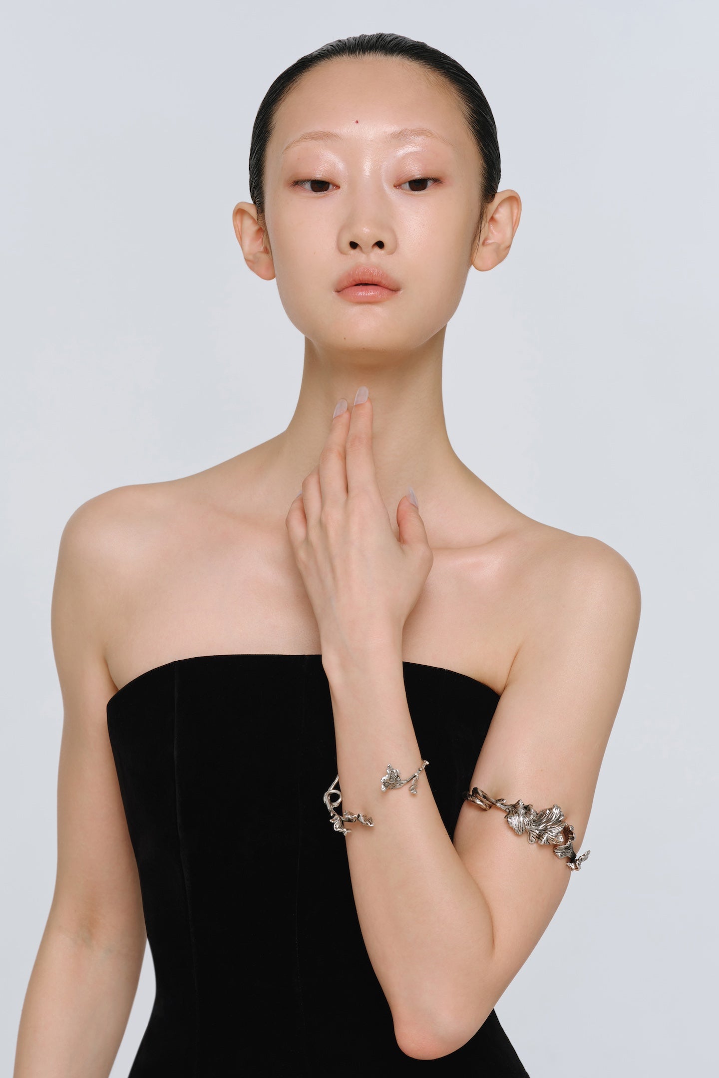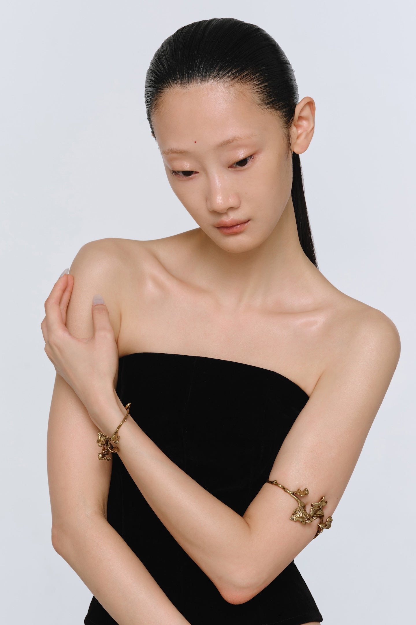 Introducing the Antique Color Betta Fish Armlet by ANCIENT FUTURE – a beautiful, handmade pair crafted with brass. With its intricate design and symbolic texture, this accessory transforms the essence of nature into a wearable piece of art, embodying the brand's commitment to capturing mythic elements in every piece.