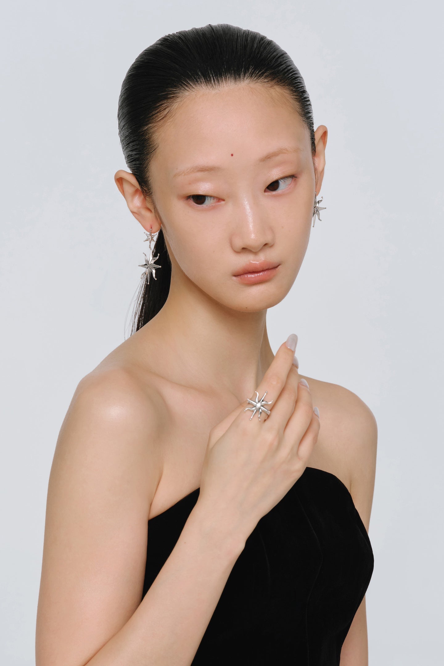 Introducing the Solar Star Ring by ANCIENT FUTURE – a beautiful, handmade pair crafted with brass. With its intricate design and symbolic texture, this accessory transforms the essence of nature into a wearable piece of art, embodying the brand's commitment to capturing mythic elements in every piece.