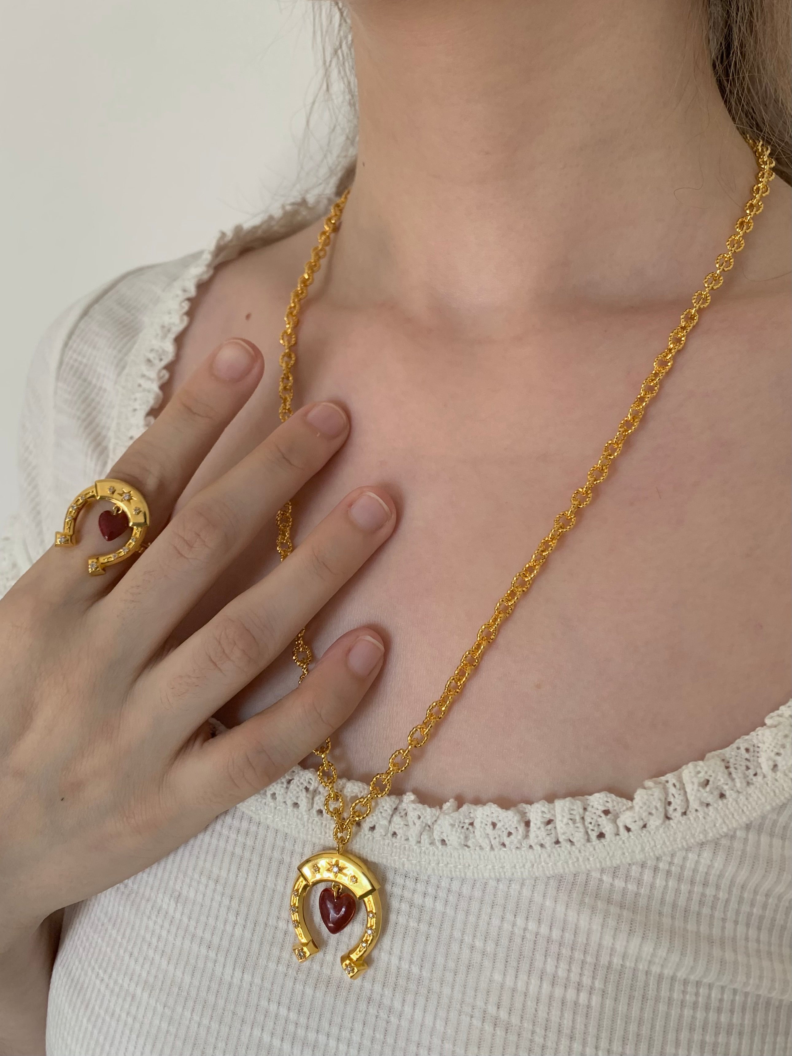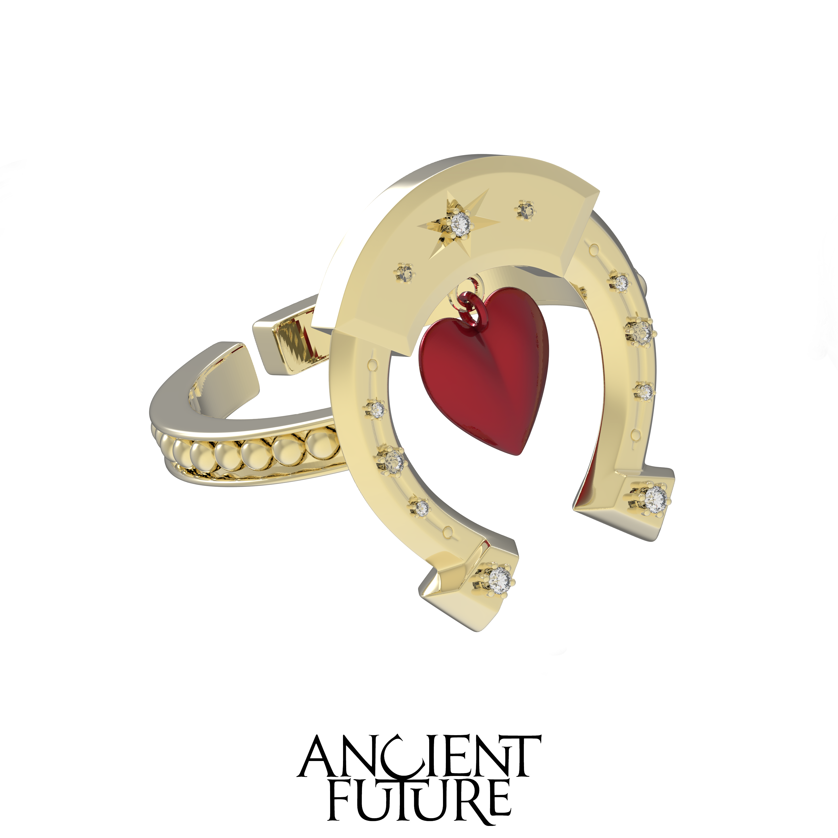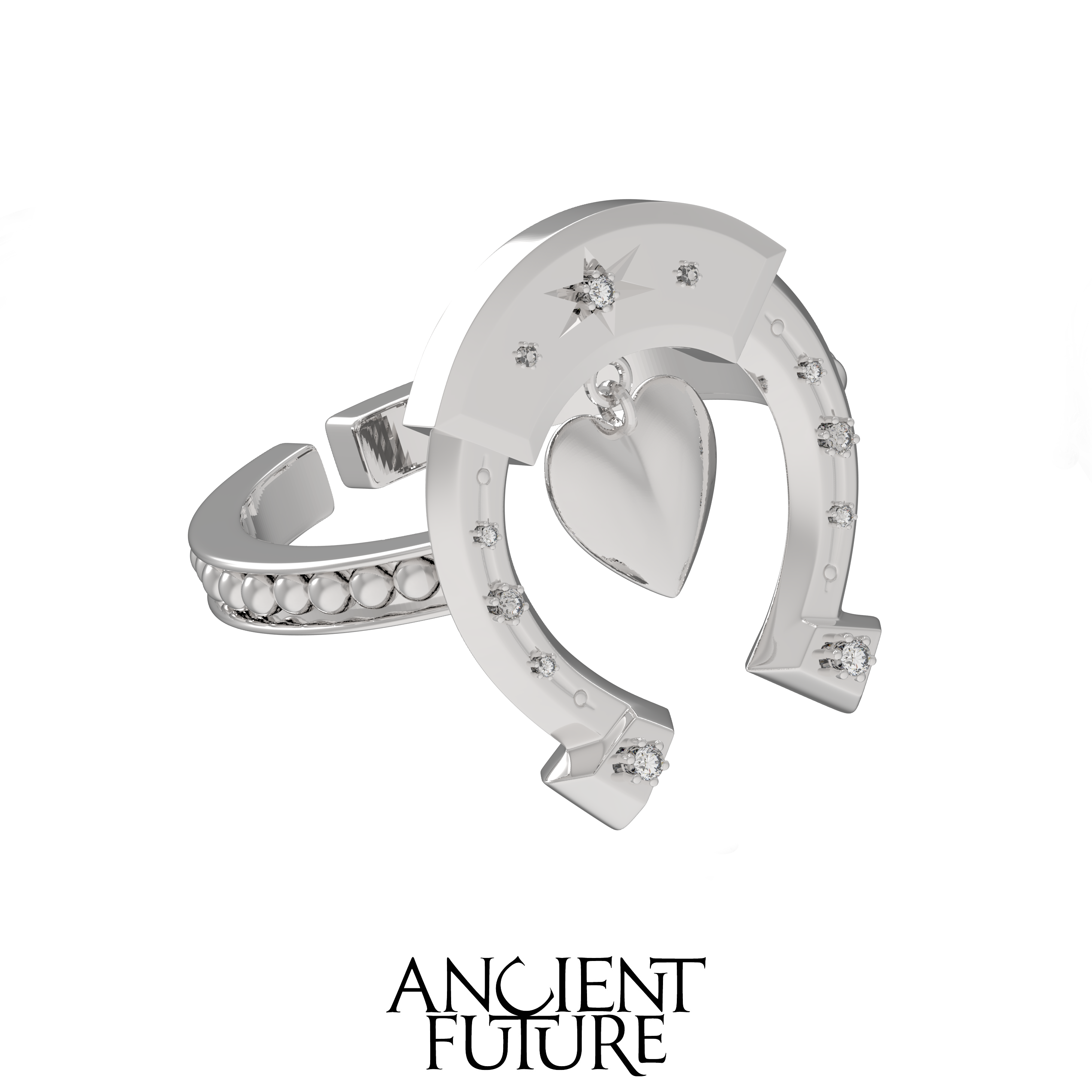 The Fortune Horseshoe Ring by ANCIENT FUTURE is a finely handmade ring available in two finishes: Brass-Plating 18k Gold with Artificial Zircon and Enameling, and Brass-Plating White Gold with Artificial Zircon. The combination of polished metal, delicate zircon detailing, and refined craftsmanship highlights the brand’s approach to turning symbolic forms into wearable pieces of art.