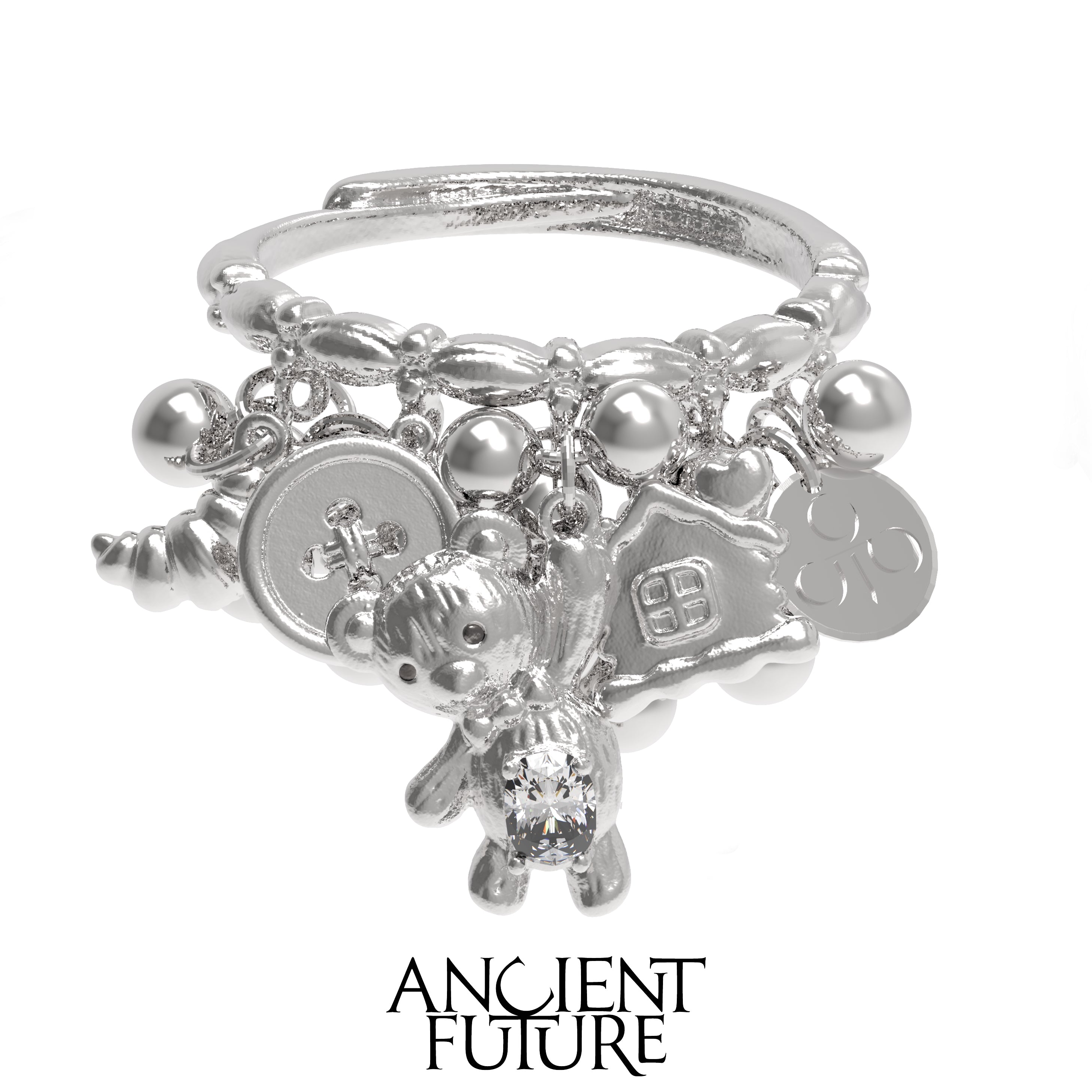 The Gentle Bear Ring by ANCIENT FUTURE is a handcrafted ring made with Brass-Plating White Gold and Artificial Zircon. Smooth contours and delicate zircon accents define the piece, offering a restrained yet expressive design that reflects the brand’s vision of turning gentle, symbolic imagery into wearable art.